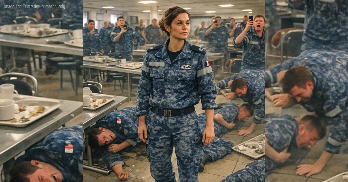 Quatre jeunes recrues encerclent une simple logisticienne à la cantine… quarante-cinq secondes plus tard, leurs certitudes explosent