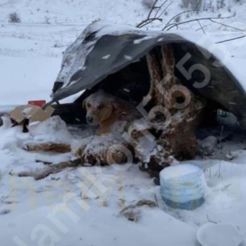 Der alte Hund lag still im Schnee, seine teefarbenen Augen suchten den Horizont. Jedes Auto, das vorbeifuhr, ließ sein Herz kurz schlagen – vielleicht war es ihres.