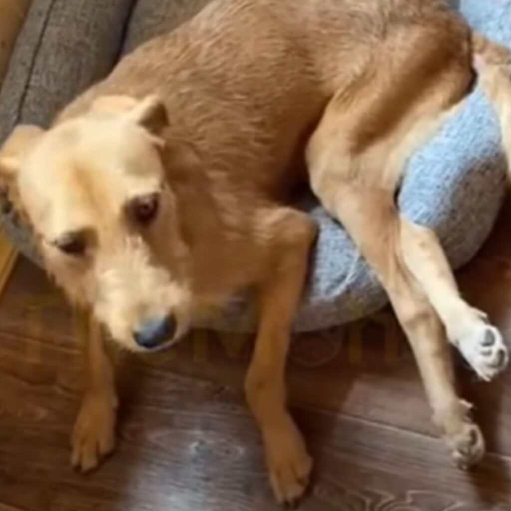 Er lag auf der kalten Veranda einer kleinen Klinik, die nach Desinfektionsmittel und Hoffnung roch. Seine Pfoten zuckten manchmal, als wollten sie rennen, doch sein Rücken trug die Narben einer alten Wunde.