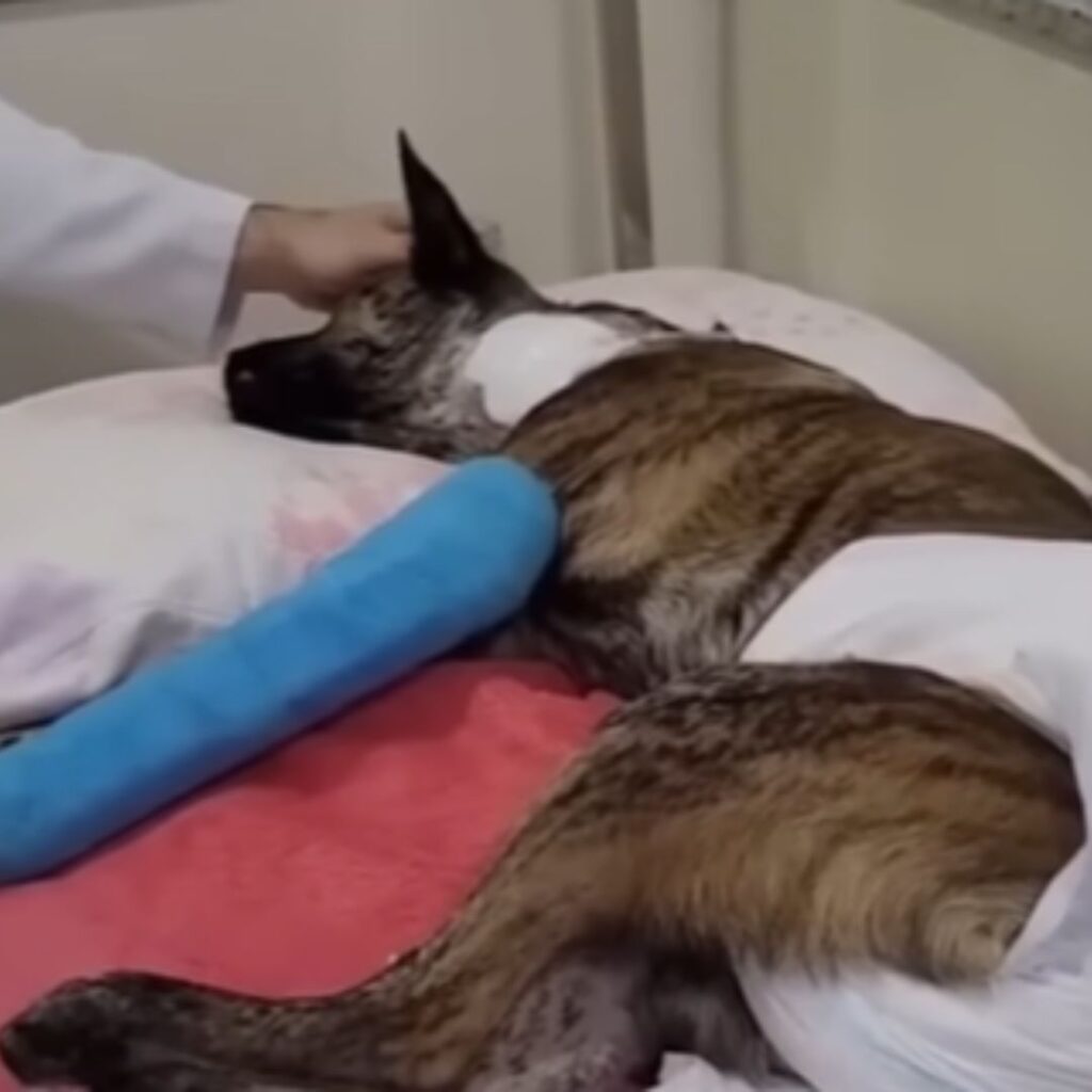 Die Tierklinik war hell, steril, voller Geräusche. Die Ärzte bewegten sich schnell, ihre Stimmen waren ruhig, aber bestimmt. Dukes Kiefer war zertrümmert, seine Vorderbeine gebrochen, seine Hinterbeine trugen Narben eines alten Unfalls.