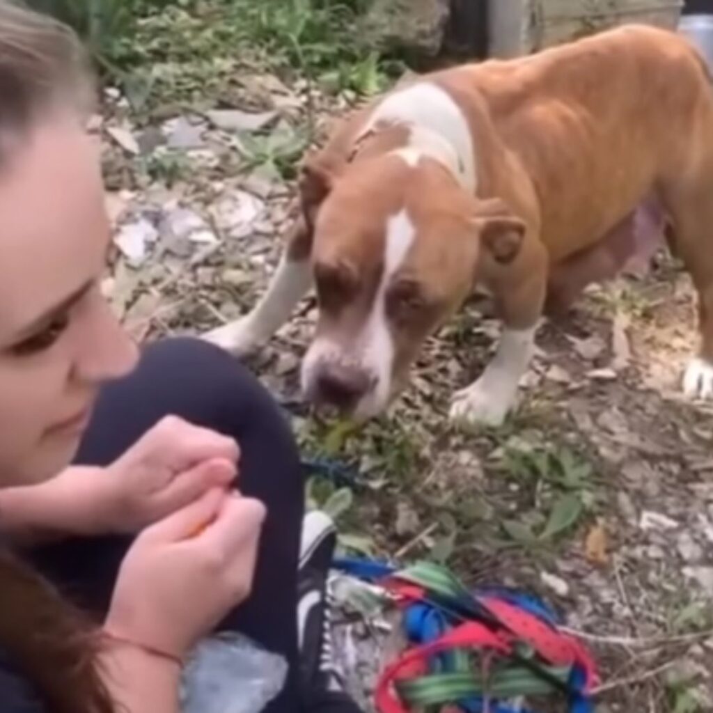 Sie kroch näher. Die Frau bewegte sich nicht. Das Futter lag auf dem Boden, ein kleines Geschenk. Die Hündin nahm es, schnell, misstrauisch. Doch ihre Augen blieben bei der Frau.