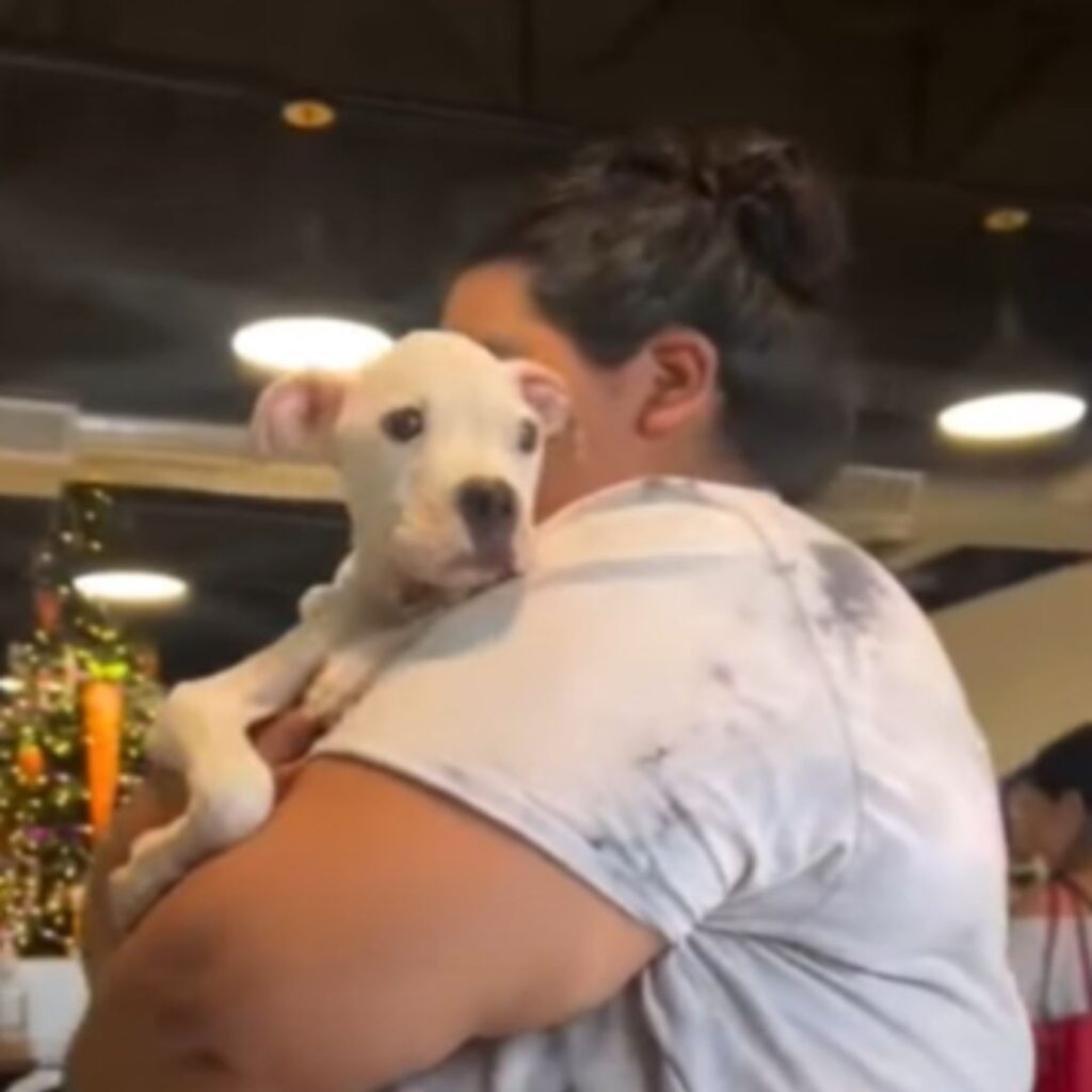Die Frau sah ihn zuerst. Sie hielt inne, ihre Hand am Gartentor. Der Welpe hob den Kopf, langsam, als würde jede Bewegung schmerzen. Ihre Augen trafen sich. Seine waren groß, braun, voller Fragen.