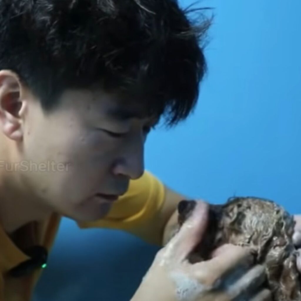 Der Retter kniete sich nieder. Der Hund war leicht, fast wie ein Schatten.