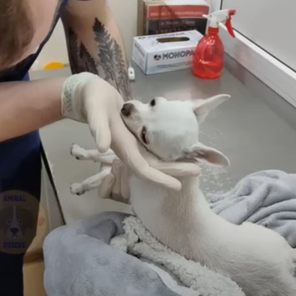 Der kleine Körper, der kaum Kraft hatte, stemmte sich gegen das Schicksal. Ich lächelte durch Tränen. „Du bist stärker, als du denkst“, sagte ich, und in diesem Moment leckte er sanft meine Hand.