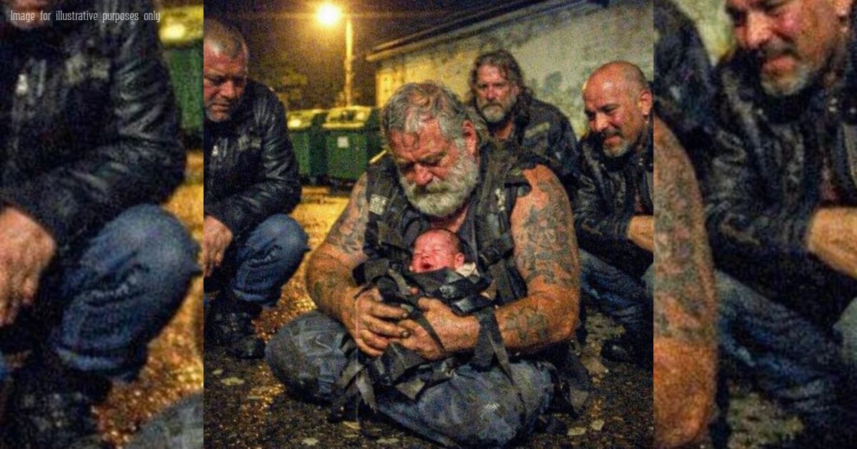 Ha strappato il suo gilet pieno di distintivi per avvolgere una neonata abbandonata dietro il bar.