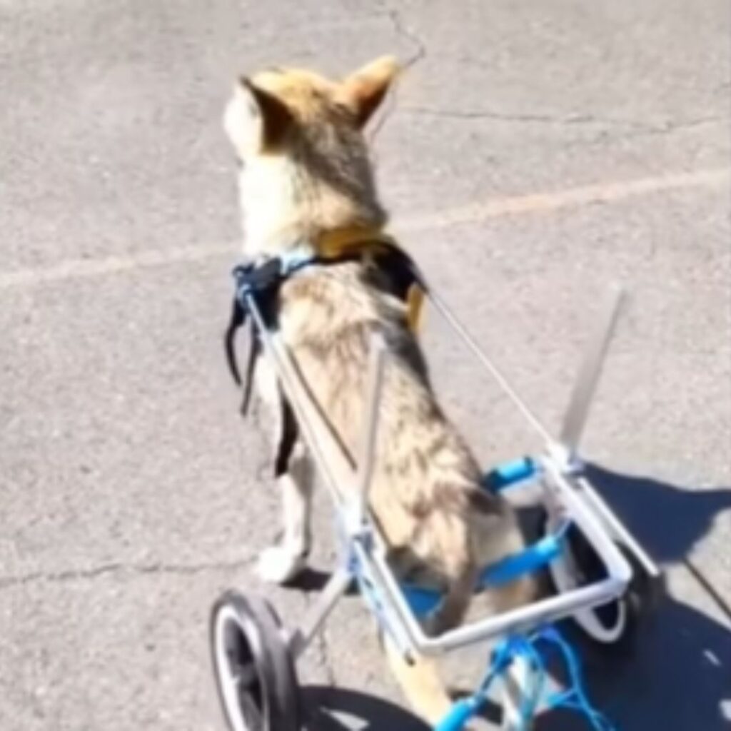 Fünf Jahre vergingen. Bitter Melon bekam einen Rollstuhl, ein einfaches Gestell, das der Mann selbst gebaut hatte. Der Hund lernte schnell, ihn zu benutzen.
