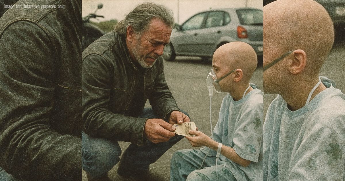 Il motociclista prese la banconota stropicciata da venti euro dalla mano scheletrica del bambino di dieci anni e cercò di non piangere.