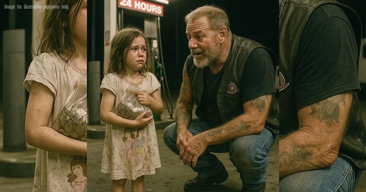 No tendría más de seis años. Llevaba un camisón de princesas todo sucio en una gasolinera abierta las 24 horas, apretando contra el pecho lo que parecían años de monedas ahorradas, mientras las lágrimas le dibujaban líneas limpias en la suciedad de la cara.