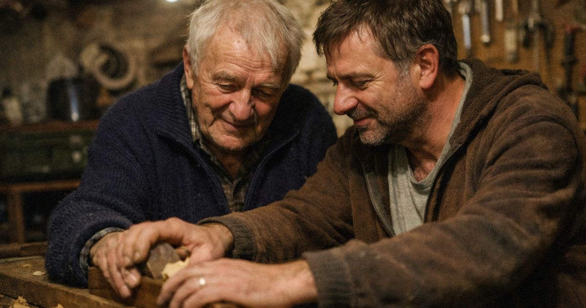 On est descendus au sous-sol. C’est son sanctuaire. L’odeur de sciure, de fioul et de vieux papier. C’est là que j’ai appris à tenir un marteau. Là que tout était toujours réparable.