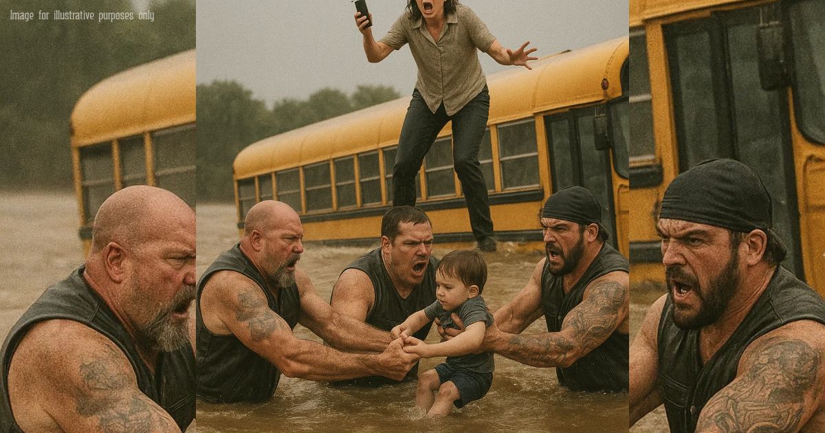 El autobús escolar se hundía deprisa, el agua ya llegaba a las ventanas, y aquellos hombres de cuero y tatuajes fueron los únicos que no dudaron ni un segundo, mientras el resto de la gente se quedaba grabando con el móvil desde el puente.