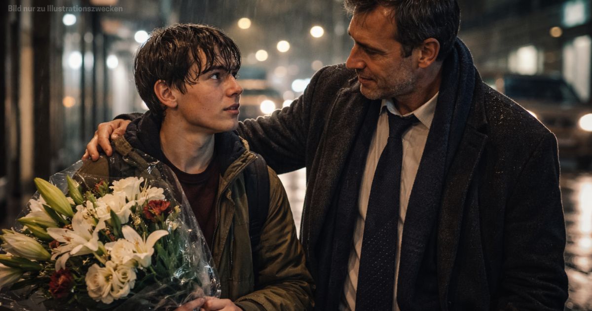 Il ragazzo strinse il mazzo di fiori al petto, proteggendolo dalla pioggia, e mi guardò. Sotto la luce giallastra dei lampioni, vidi un dolore profondo nei suoi occhi scuri.
