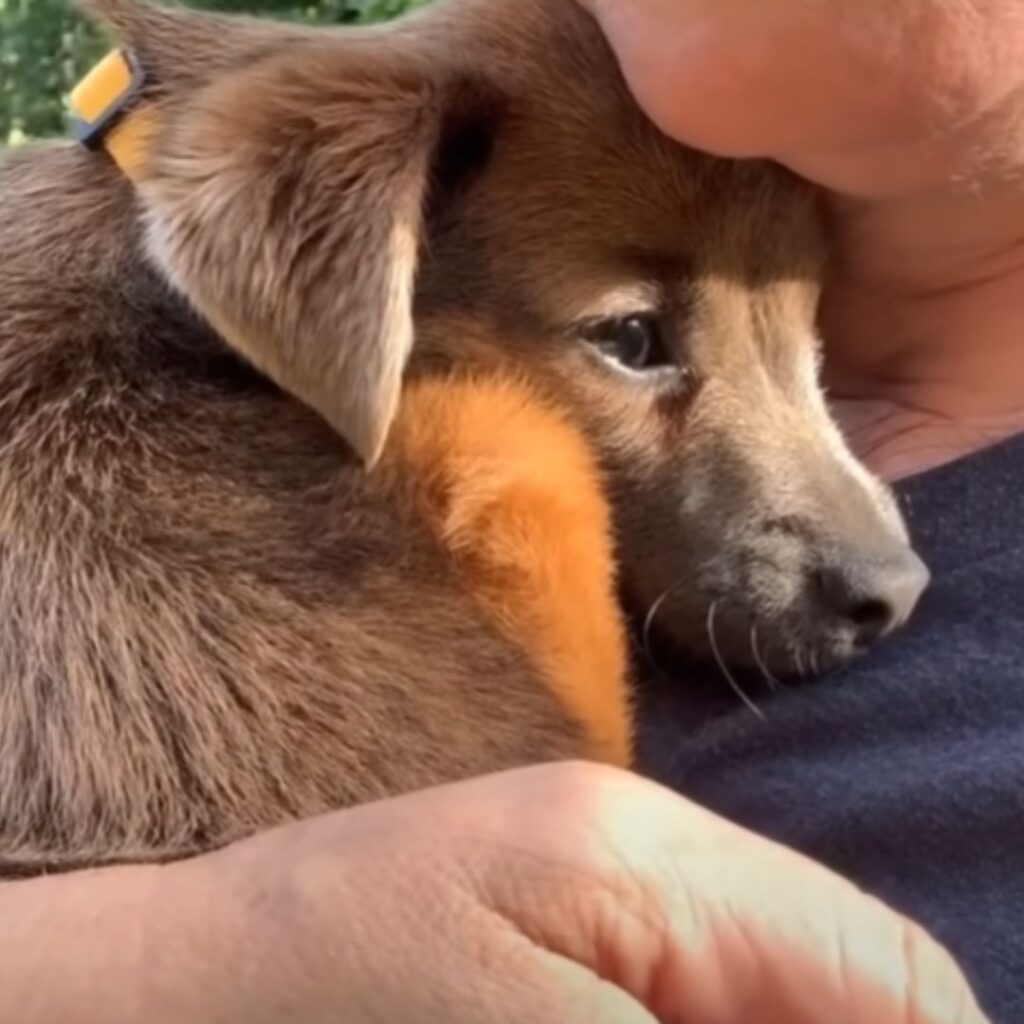 Pookie legte ihren Kopf an ihren Hals, als wüsste sie: Ich bin zu Hause.