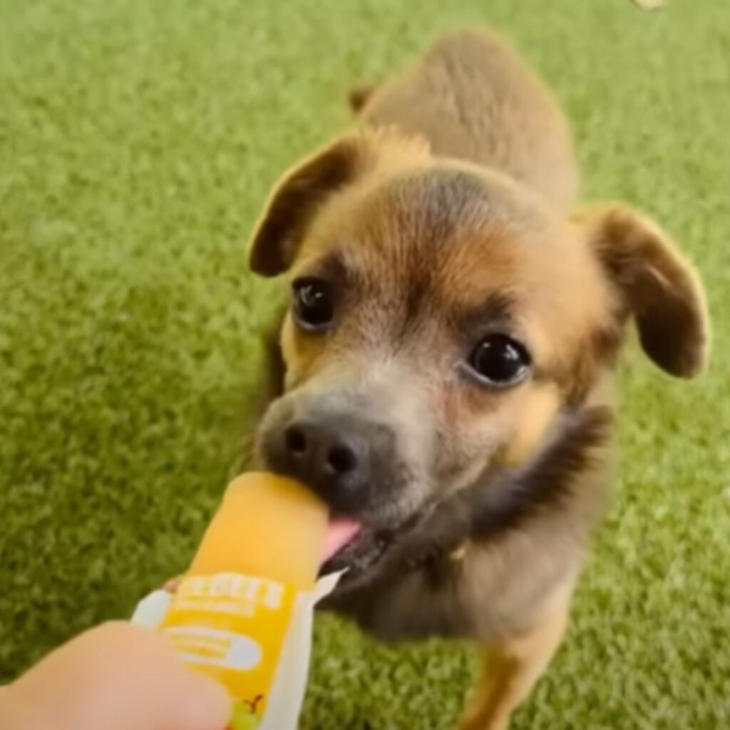 Ein gefrorenes Leckerli wurde ihr größter Schatz, ihre Augen strahlten.