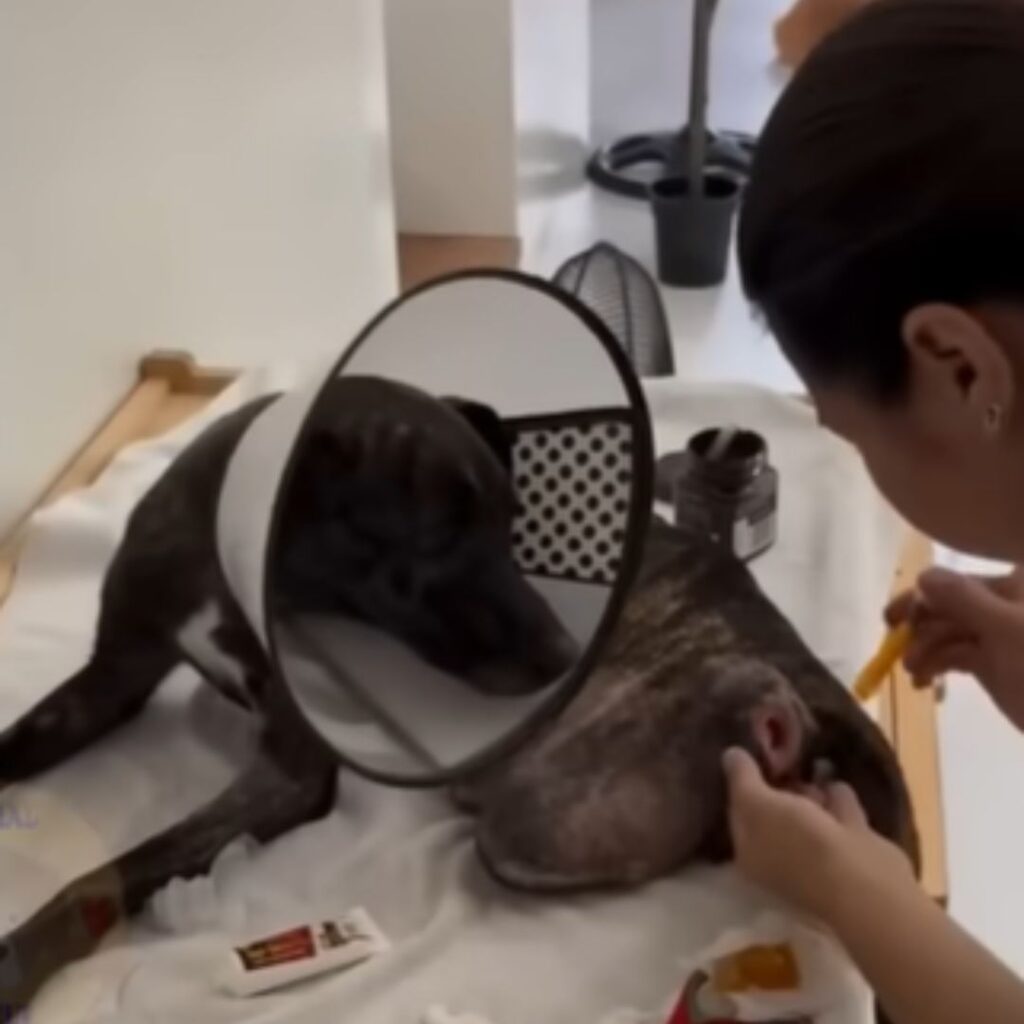 Als der Tierarzt sie sah, wurde es still im Raum. Die Wunden waren schlimm, die Infektion weit fortgeschritten. Niemand wusste, ob sie die Nacht überstehen würde. Und doch, als die Hände sie behutsam berührten, blickte sie auf.