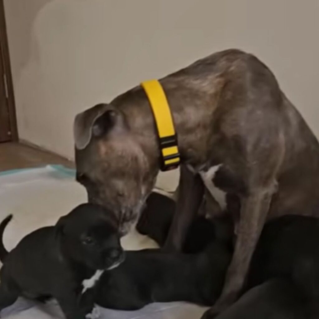 Als sie aufwachte, suchte sie sofort ihre Welpen. Die Frau brachte sie zu ihr, und die Hündin leckte jedes kleine Gesicht, als wollte sie sagen: „Ich bin zurück.“