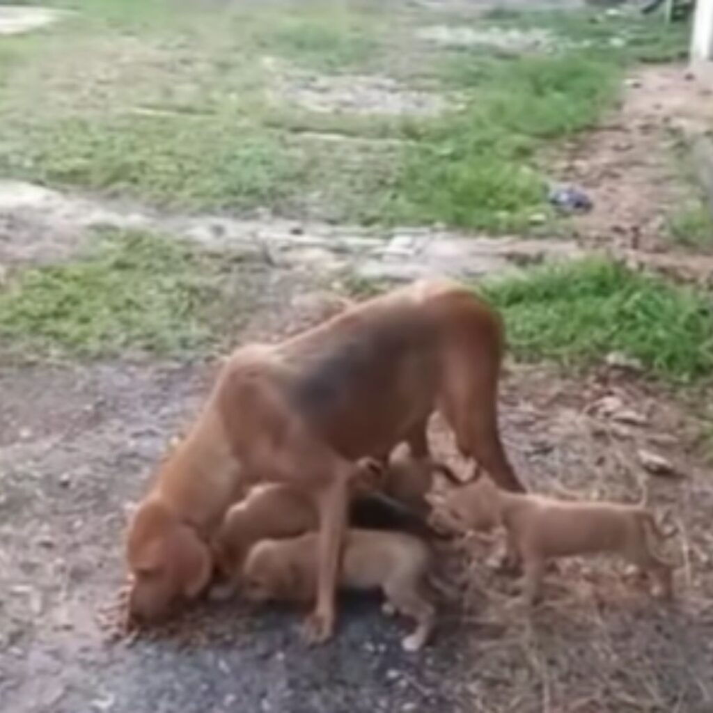 Die Hündin zuckte zusammen. Ihre Welpen zitterten.