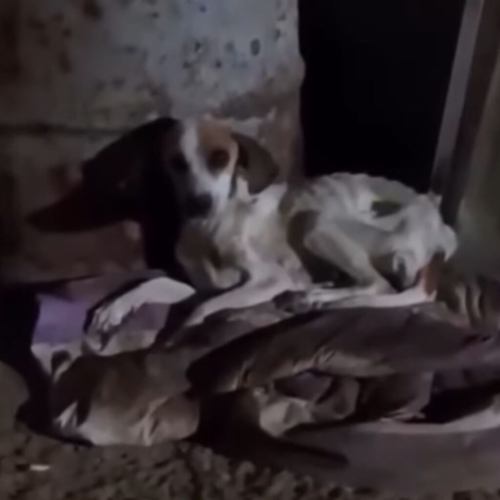 Der Wind strich über den kleinen Hof, hob Staub auf und legte ihn wieder ab. Neben der leeren Futterschüssel lag ein Hund – dünn, still, die Rippen deutlich unter dem blassen Fell. Nur ihre Augen bewegten sich.