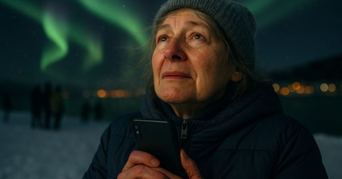 Giro la fotocamera. Non gli mostro la carta da parati a fiori del mio ingresso. Gli mostro la neve. Profonda, intatta, scintillante. E poi inquadro il cielo. Sopra di me, nel buio artico di Tromsø, veli verdi e viola danzano come spiriti, come musica visibile. È la cosa più bella che abbia mai visto.