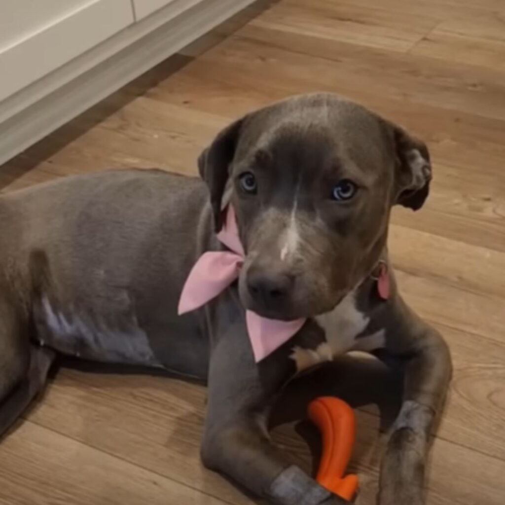 Später lernte sie, an der Leine zu gehen, im Garten zu spielen, sich auf das Sofa zu schmiegen.
